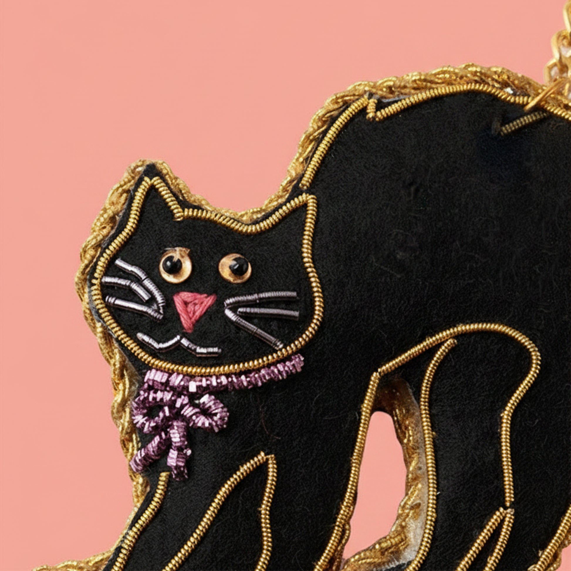 インド職人の丁寧な手刺繍ザリ刺繍バッグチャームで表現された、愛くるしい動物モチーフシリーズです。