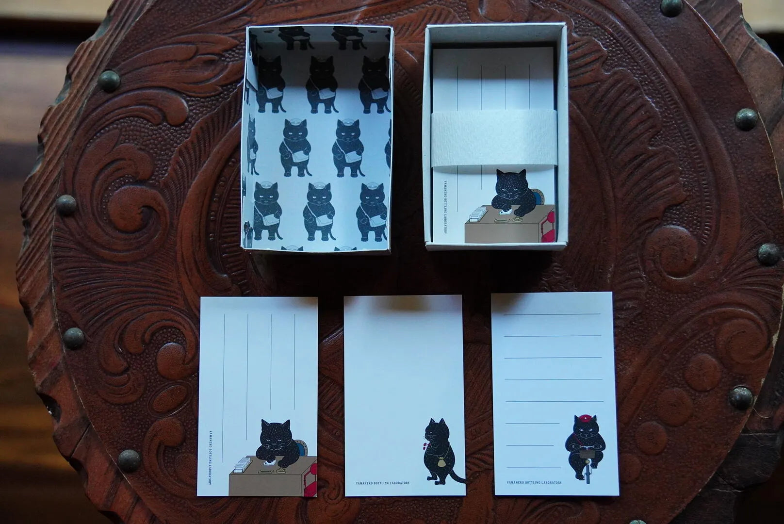 便箋の右下には郵便猫の生活が垣間見えるイラストが描かれています。